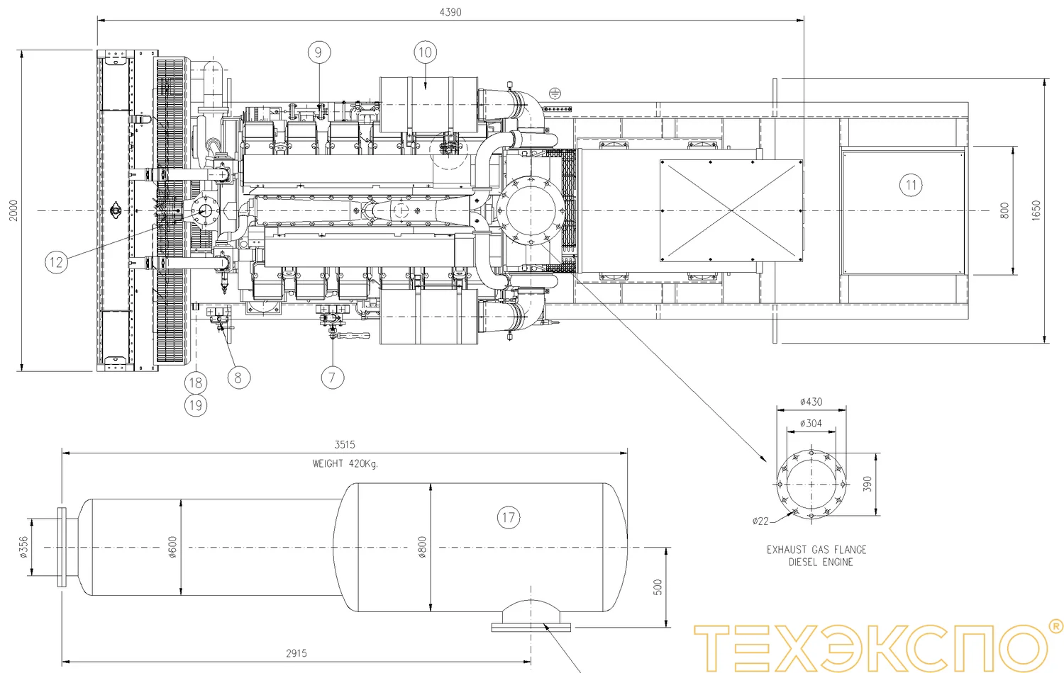 Компания «Техэкспо» осуществляет комплексную поставку и монтаж дизельных электростанций 1 - 2 МВт на базе двигателей Perkins, Cummins, MTU и Mitsubishi, оборудованных высоковольтными генераторами напряжением 6,3 и 10,5 кВ. В параллельном режиме работы возможна организация энергокомплексов мощностью до 30-40 МВт, а из ДЭС единичной мощностью 2,5 МВт на двигателе MTU - до 50 МВт.